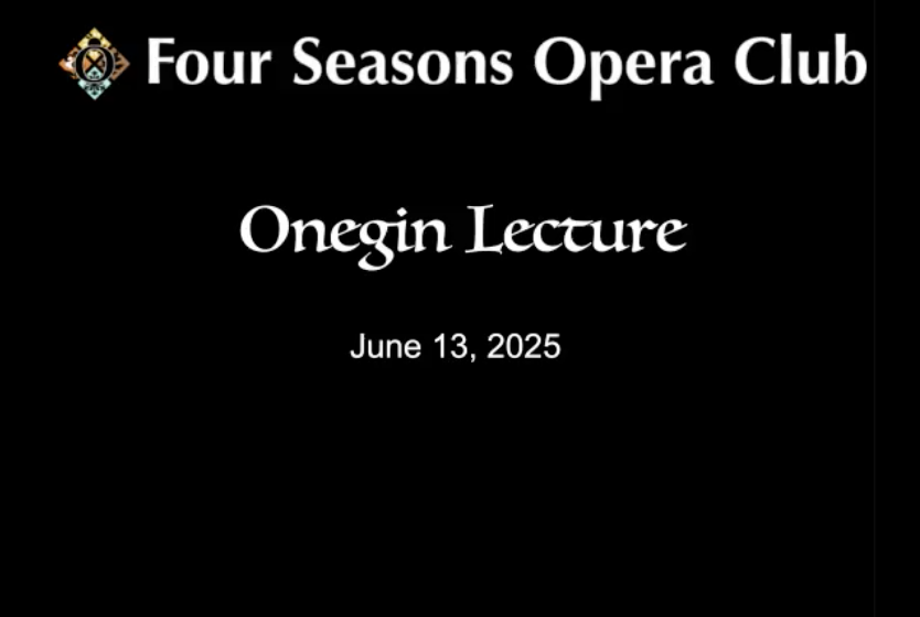 The lecture is long -- about 45 minutes. But it will be well worthwhile with the result that you will find that Eugene Onegin is one of your favorite operas.